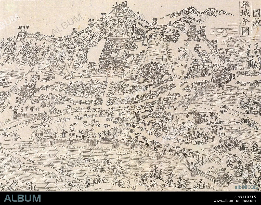 Caption: Hwaseong Fortress or Suwon Hwaseong is a fortification surrounding the centre of Suwon, the provincial capital of Gyeonggi-do, in South Korea. It was built from 1794 to 1796 by King Jeongjo of Joseon (1752 - 1800), the 22nd ruler of the Joseon Dynasty of Korea. After succeeding his grandfather, King Yeongjo, he made various attempts to reform and improve the nation. The map is from Hwaseong-seongyeok-ui-gwae ???????? ordered for publication by King Jeongjo in order to spread the processes of a whole fortress' construction. It was published in 1801. Jeongjo died a year before the publication of the book.