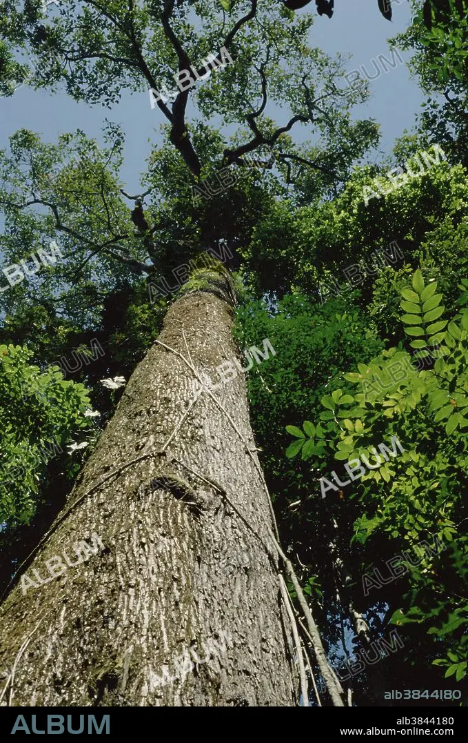 Caption: A Brazil Nut tree, of the family Lecythidaceae, grows in the Amazon tropical rain forest. Taken in Para, Brazil. (Bertholletia excelsa)
