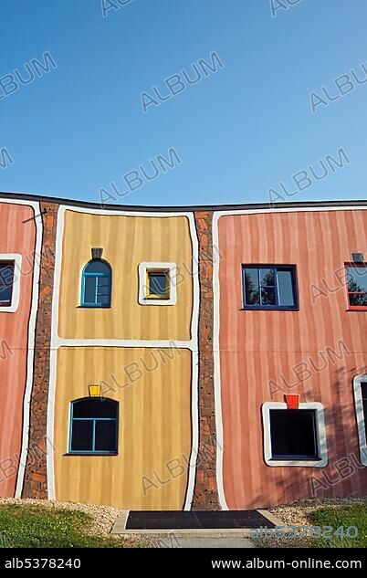Facade of Vulkania Building at Rogner Bad Blumau hotel complex, designed by architect Friedensreich Hundertwasser, in spa town Bad Blumau, Styria, Austria, Europe