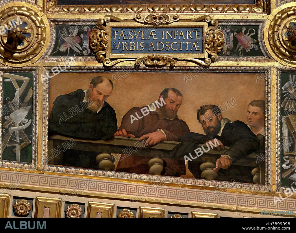 Caption: Portraits of Vasari's collaborators. Date/Period: 1563 - 1565. Oil painting on wood. Height: 130 mm (5.11 in); Width: 250 mm (9.84 in).