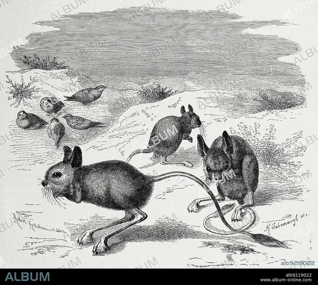 Caption: Greater egyptian jerboa (Jaculus orientalis) is a rodent of the jumping mouse family found in North Africa, greater Egyptian jerboa, Jaculus (orientalis), is a species of rodent, Historic, digitally restored reproduction of an original 19th century print, exact original date not known century