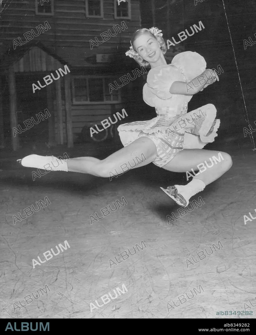 Caption: Rose Marie's Stag Jump -- ***** skater *****, Canada's Barbara Ann Scott former world champion figure skater, sails ***** the air during a ***** the new London Ice show, ***** Maria on 'Ice', at the ***** Arena, today Wednesday, Barbara Ann is executing ***** stag jump.Her skates flashing, Canada's Barbara Ann Scott, former world champion figure skater, sails through the air during rehearsal in London for Rosemarie On Ice. Barabara Ann is rehearsing the "stag jump." June 27, 1951. (Photo by Reuterphoto).
