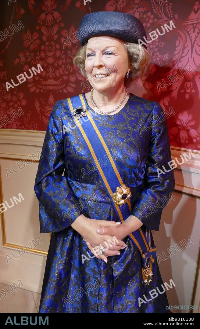 Caption: Waxwork statue of Princess Beatrix of the Netherlands. Beatrix was born 31 January 1938. She is a member of the Dutch Royal House who reigned as Queen of the Netherlands from 30 April 1980 until her abdication on 30 April 2013.