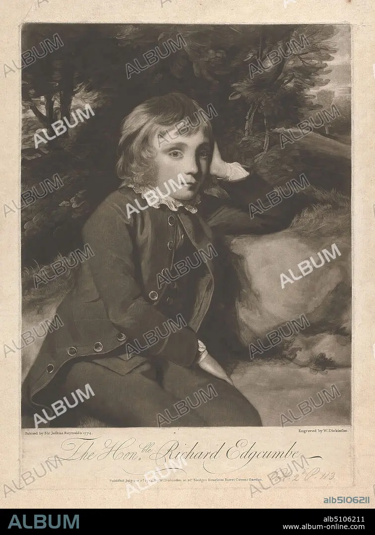 Caption: Honorable Richard Lord Edgcumbe, 1st Baron Edgcumbe, William Dickinson, 17461823, British, after Sir Joshua Reynolds RA, 17231792, British, 1774, Mezzotint on moderately thick, moderately textured, beige, laid paper, Sheet: 19 1/4 × 14 3/4 inches (48.9 × 37.5 cm), Plate: 15 5/16 × 11 inches (38.9 × 27.9 cm), and Image: 13 1/4 × 10 15/16 inches (33.7 × 27.8 cm)