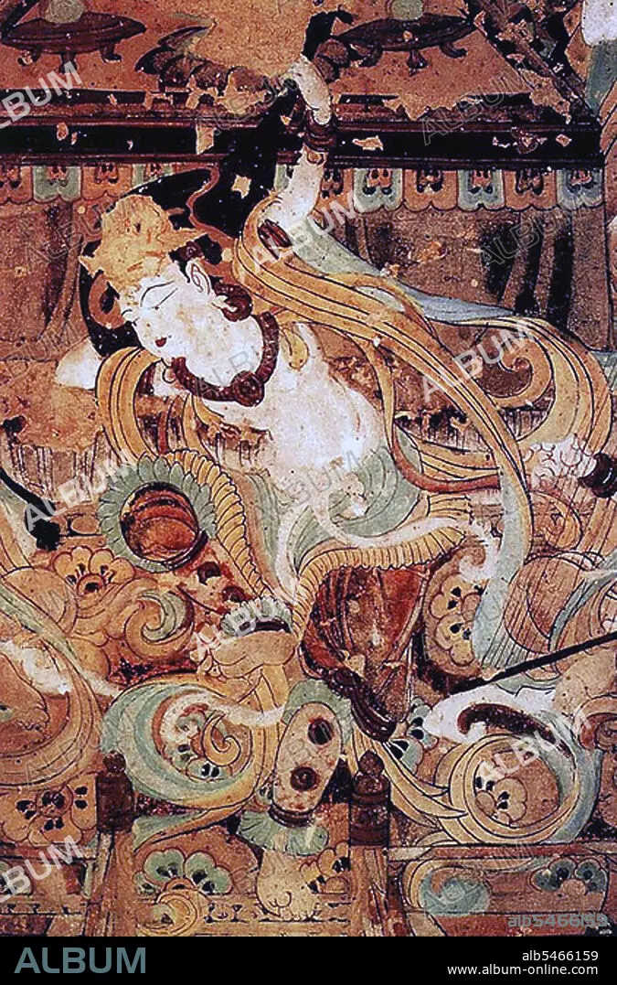 Title: A Celestial Being. Mural, Mogao Caves, Dunhuang, Gansu Province.