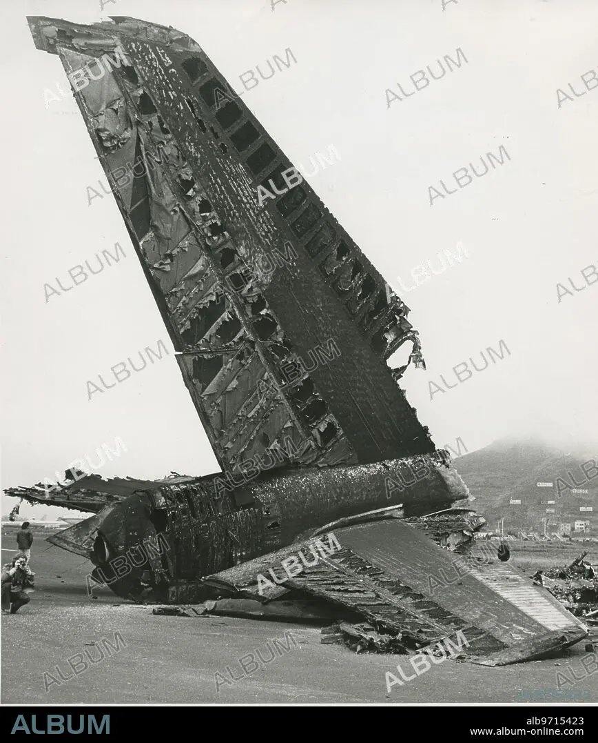 Caption: San Cristóbal de La Laguna (Santa Cruz de Tenerife), 03/28/1977. Air disaster at Los Rodeos Airport. Two Boeing 747 airplanes collide on the runway on March 27, causing 583 deaths, the largest air disaster in history. The damaged planes were flights KLM 4805 of the KLM company, and PAA 1736 of Pan Am
