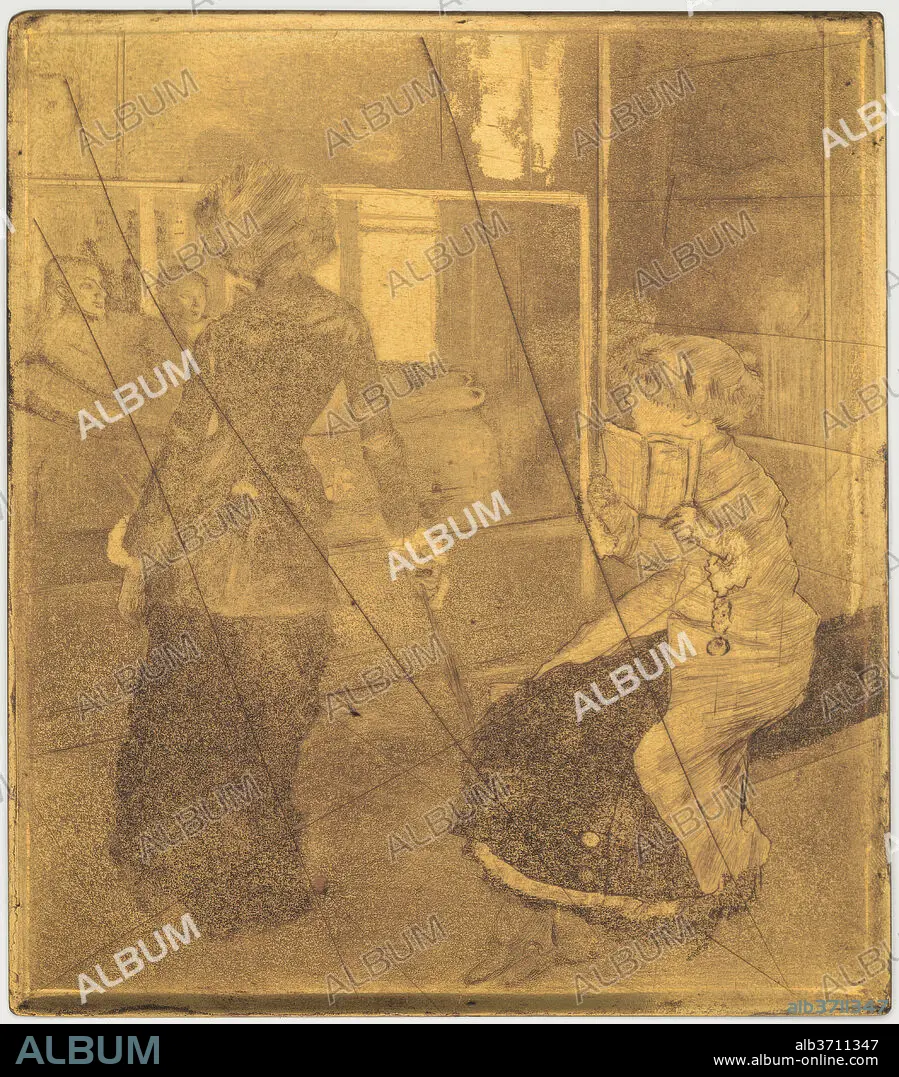 Caption: Mary Cassatt at the Louvre: The Etruscan Gallery [copper plate]. Dated: 1879/1880. Dimensions: plate: 26.8 x 23.4 cm (10 9/16 x 9 3/16 in.). Medium: cancelled copper plate.