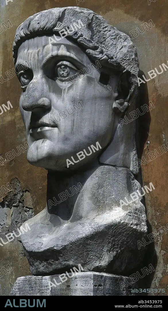 Colossus of Constantine the Great (280-337). Roman emperor. Head. White marble. Capitoline Museums. Rome. Italy.