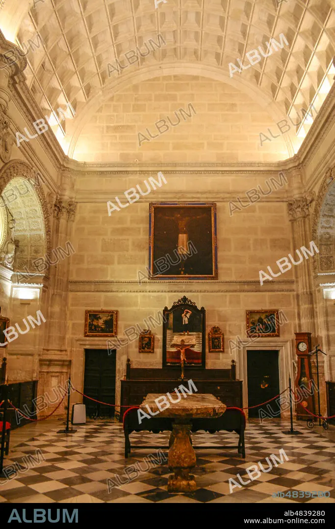 Almería, Andalusia, Spain, Europe.. Catedral de Santa María de la Encarnación (Cathedral of Saint Mary of the Incarnation). J XVI century - Spanish Renaissance. The main sacristy (Sacristía Mayor) constitutes the most characteristic space of the Cathedral of Almería, constituting a point of reference for Renaissance art in southern Spain. Juan de Orea, in the sixteenth century, conceived the Sacristy of Almeria as that place of preparation of the ministers of worship for religious celebrations.
