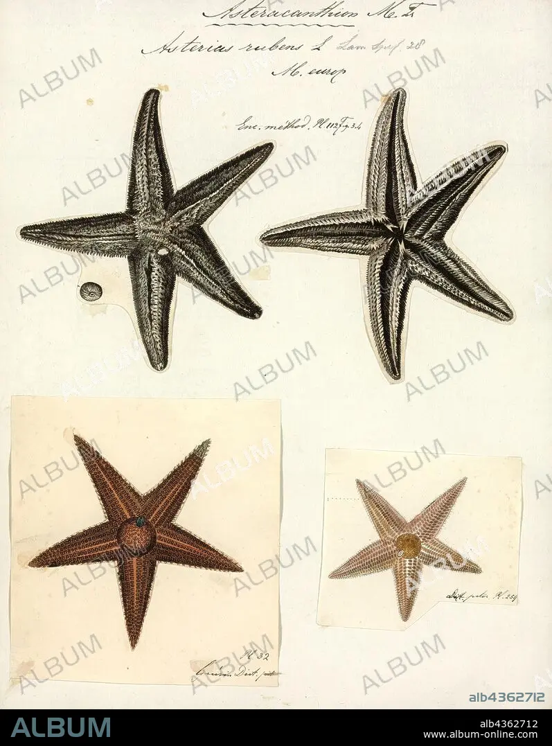 Asterias rubens, Print, The common starfish, common sea star or sugar starfish (Asterias rubens) is the most common and familiar starfish in the north-east Atlantic. Belonging to the family Asteriidae, it has five arms and usually grows to between 10-30 cm across, although larger specimens (up to 52 cm across) are known. The common starfish is usually orange or brown, and sometimes violet; deep-water specimens are pale. The common starfish is to be found on rocky and gravelly substrates where it feeds on molluscs and other benthic invertebrates.