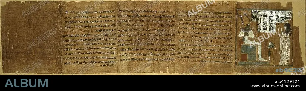 Caption: Scene from the Book of the Dead. Egyptian. Date: 1070 BC-946 BC. Dimensions: 24.5 × 101 cm (9 11/16 × 39 7/8 in.). Papyrus and pigment. Origin: Egypt.