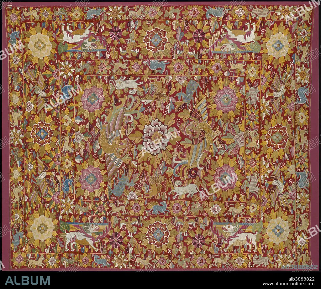 Caption: Cover. Peruvian, Colonial period, late 17th to early 18th century. Date/Period: Late 17th century - early 18th century. Textiles. Wool, silk, cotton, and linen interlocked and dovetailed tapestry. Height: 2,383 mm (93.81 in); Width: 2,073 mm (81.61 in).