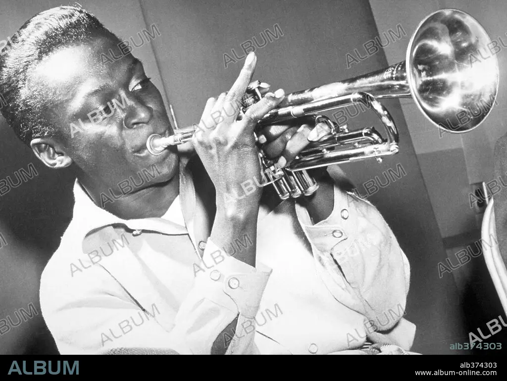American jazz musician and composer Miles Davis playing the trumpet, 50s.