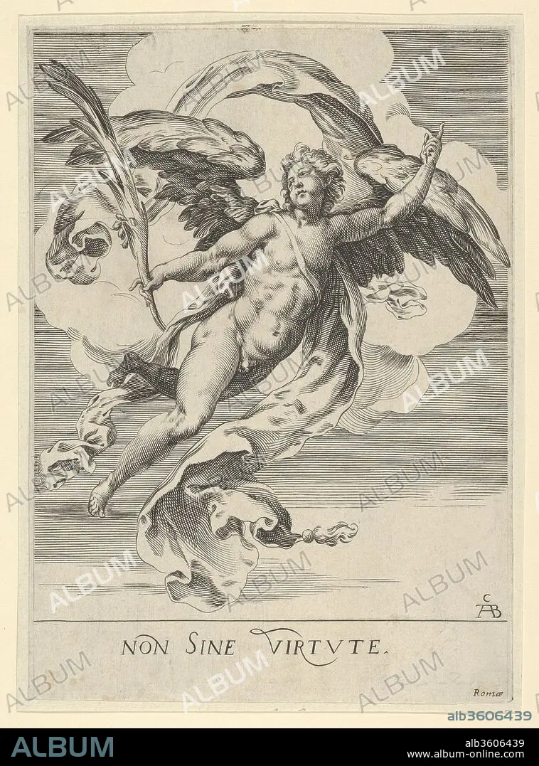 Caption: Winged angel holding a palm in his right hand and with drapery behind him. Artist: After Cherubino Alberti (Zaccaria Mattia) (Italian, Borgo Sansepolcro 1553-1615 Rome). Dimensions: Sheet: 8 7/8 × 6 7/16 in. (22.6 × 16.3 cm). Publisher: Mariette. Date: 17th century.