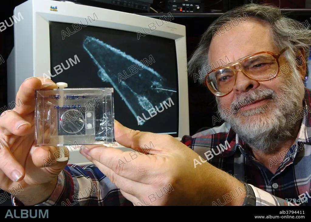 Caption: Researcher displays a sample from the Stardust mission, which collected samples of comet dust and returned them to the Earth. The sample was analyzed at the Advanced Photon Source at Argonne National Laboratory. The particles are the first pieces of a comet to have ever been plucked from outer space and returned to Earth. The primary goal of Stardust was to collect dust and carbon-based samples during its closest encounter with Comet Wild 2. Samples spent a few days at Argonne and were bombarded by the high-precision X-ray beams from the Advanced Photon Source (APS). By using the APS to map the samples, researchers hope to determine their chemical makeup and to gain a better understanding of the composition of comets and other planetary bodies, including the Earth. The particles were captured in aerogel, a special type of foamed glass, made so lightweight that it is barely visible and almost floats in air. This project gives scientists the opportunity to determine the unique characteristics of a comet.