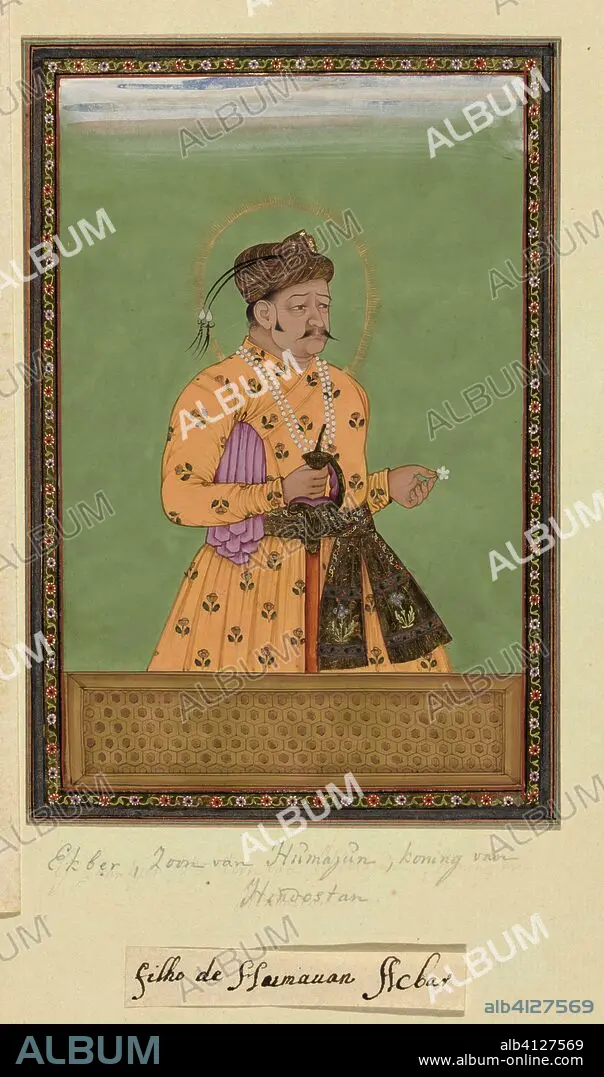 Caption: Portrait of Akbar Padshah, the son of Humayun, who reigned after his father in Hindustan. Draughtsman: anonymous. Dating: c. 1686. Place: Golkonda. Measurements: h 203 mm × w 140 mm.