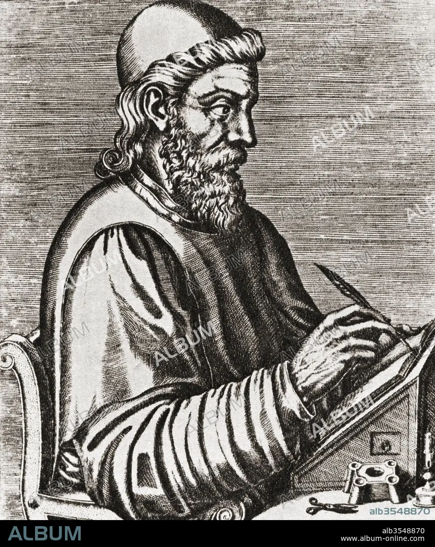 Caption: Bede, 672/673 – 735, aka Saint Bede or the Venerable Bede. English monk. After the engraving from André Thevet's Portraits et Vies des Hommes Illustres, 1584. From Impressions of English Literature, published 1944.
