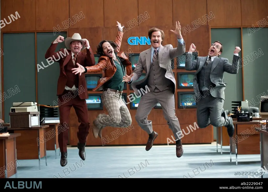 DAVID KOECHNER, PAUL RUDD, STEVE CARELL and WILL FERRELL in ANCHORMAN 2: THE LEGEND CONTINUES (2013), directed by ADAM MCKAY. Copyright PARAMOUNT PICTURES.