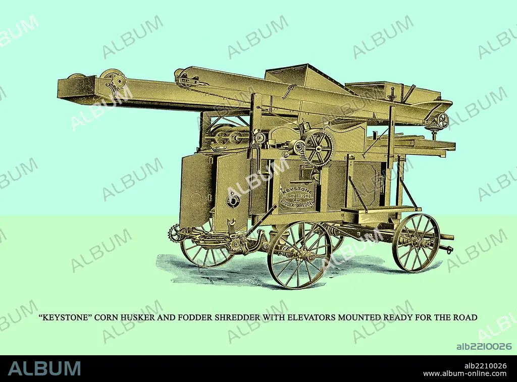 "Keystone" Corn Husker and Fodder Shredder with Elevators Mounted and Ready for the Road