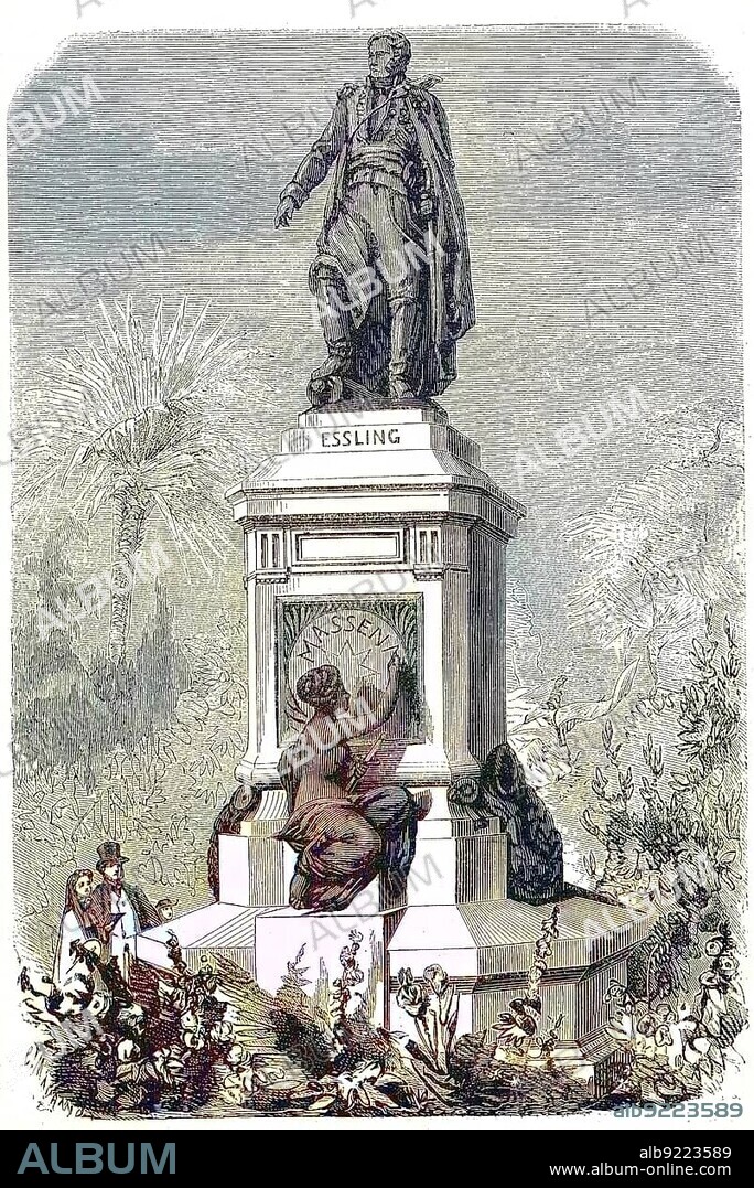 Caption: Monument to Andre Massena, Andrea Massena, Duke of Rivoli and Prince of Essling (6 May 1758 - 4 April 1817), a French military man, army commander and Marshal d'Empire, in 1869 in Nice, France, Historic, digitally restored reproduction of a 19th century original, exact original date unknown, Europe