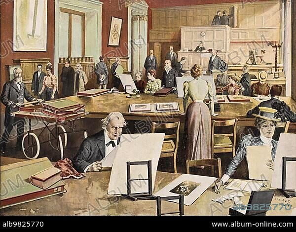 Reading Room of the Berlin Printers' Cabinet; Berlin; c. 1900; Germany; Historic; digitally restored reproduction from a 19th century original; Europe.