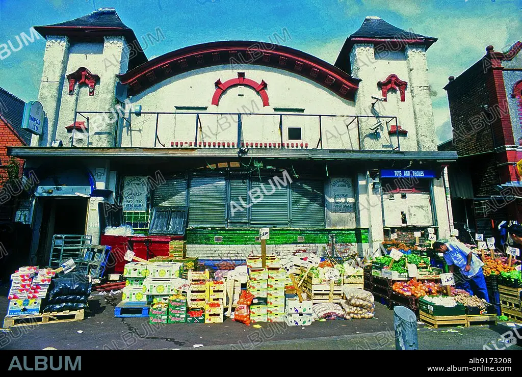 Caption: Temperance Billiard Hall, Cheetham Hill Road, Cheetham, Manchester, 2004. The front elevation of the former Temperance Billiard Hall on Cheetham Hill Road, Cheetham. The billiard hall was built in 1906 for the Temperance Billiard Halls Company, designed by in-house architect Norman Evans. It is Grade II Listed. The building later became known as the Hot Shots Snooker Club, and in the 21st century was in use as a fruit and vegetable warehouse and shop.