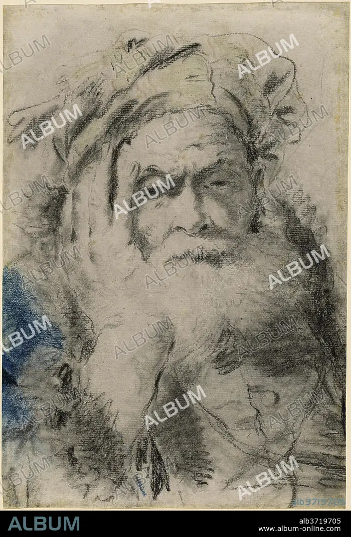 LORENZO BALDISSERA TIEPOLO. A Bearded Old Man Leaning His Head on His Hand. Dated: 1755/1762. Dimensions: sheet: 39.3 × 26.9 cm (15 1/2 × 10 9/16 in.). Medium: charcoal with stumping and blue pastel.