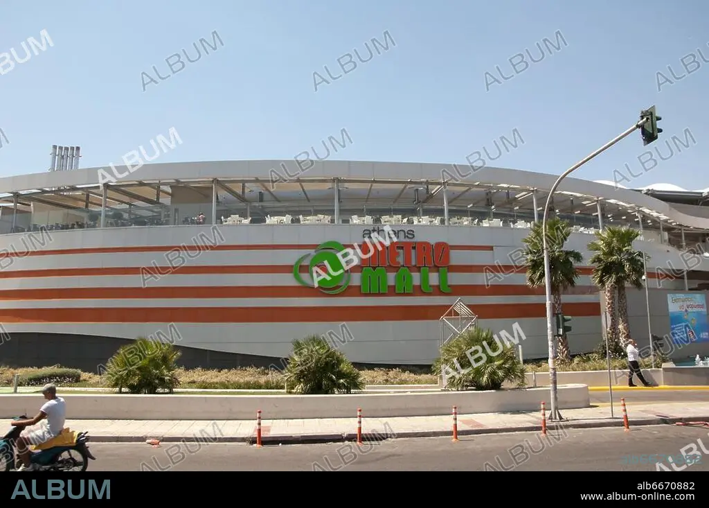 Caption: The Athens Metro Mall is a shopping mall located very close to the Saint Dimitrios stop of the Attiko Metro on Vouliagmenis Avenue. The mall opened at 30 November 2010. The Mall consists of 5 floors, 85 stores, 18 restaurants, 5 cinema screens, a super market, playground and a bank. The mall also consists of 1200 parking spaces and features a unique architectural design.