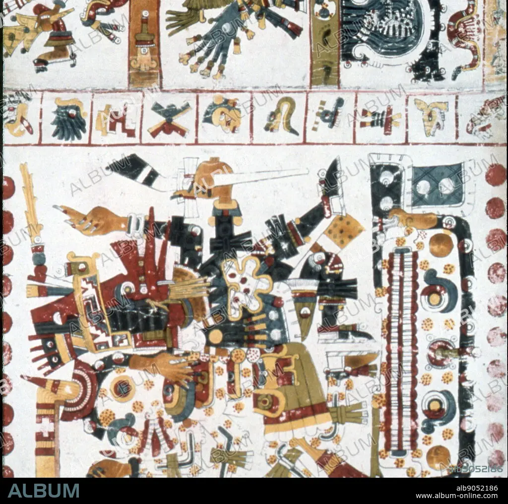 Caption: The Codex Borgia or Codex Yoalli Ehecatl, a Mesoamerican ritual and divinatory manuscript. It is generally believed to have been written before the Spanish conquest of Mexico, somewhere within what is now southern or western Puebla. The codex is made of animal skins folded into 39 sheets. The codex is read from right to left. The Codex Borgia features eighteen pages of an astronomical narrative that shows the yearlong alteration of the rainy and dry season. The Codex Borgia is named after the Italian Cardinal Stefano Borgia, who owned it before it was acquired by the Vatican Library.
