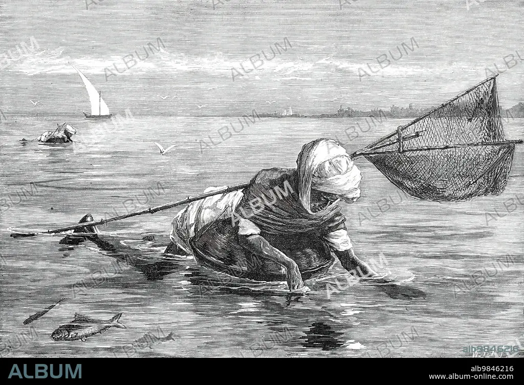 Caption: The Royal Visit to India: Pala Fishermen on the Indus, 1876. From a sketch by Captain Frank James, of the Bombay Staff Corps. From "Illustrated London News", 1876.