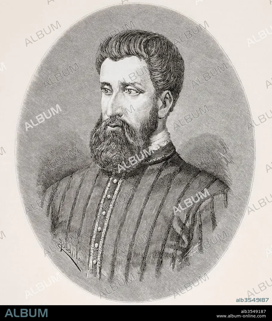 Caption: Gonzalo Jiménez de Quesada, 1506 – 1579. Spanish explorer and conquistador in Colombia. From La Ilustracion Española y Americana, published 1892.