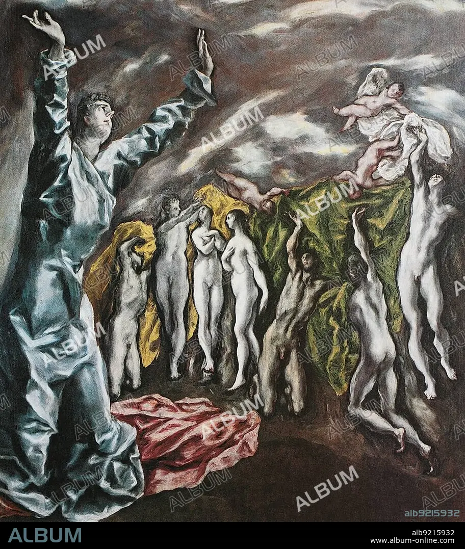 Caption: El Greco, c. 1541 - 7 April 1614, actually Dominikos Theotokopoulos, was a painter of Greek origin and main master of Spanish Mannerism and the fading Renaissance, here the painting The Opening of the 5th Seal, Historic, digitally restored reproduction of a 19th century original, exact original date not known