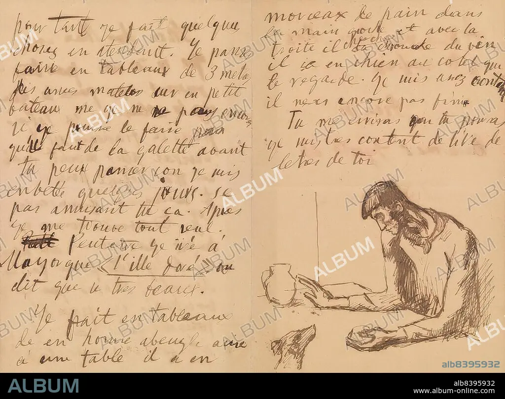 Pablo Picasso. Letter with Blind Man and Dog, 1903. Pen and brown ink on wove paper with black margins, Overall: 8 x 10 3/8 in. (20.3 x 26.4 cm). Barnes Foundation BF714. In Copyright.