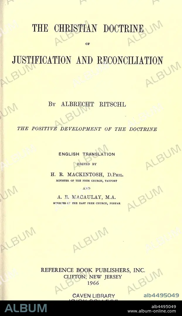 Caption: The Christian doctrine of justification and reconciliation: the positive development of the doctrine : Ritschl, Albrecht, 1822-1889