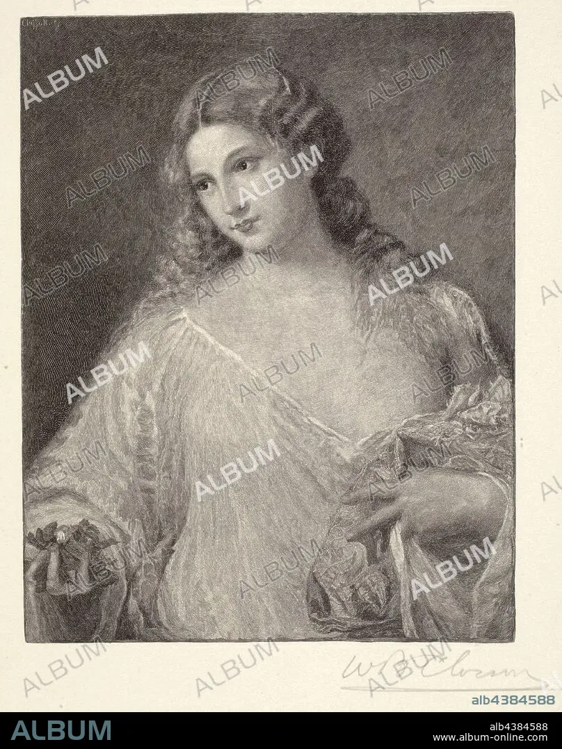 Caption: Flora, William Baxter Palmer Closson (American), After Titian (Italian, about 1487-1576), 19th century, wood engraving, 6-11/16 x 5-1/4 in. (image) 15-1/8 x 12 in. (sheet), Signed in pencil, below image, l.l.: W.B. Closson