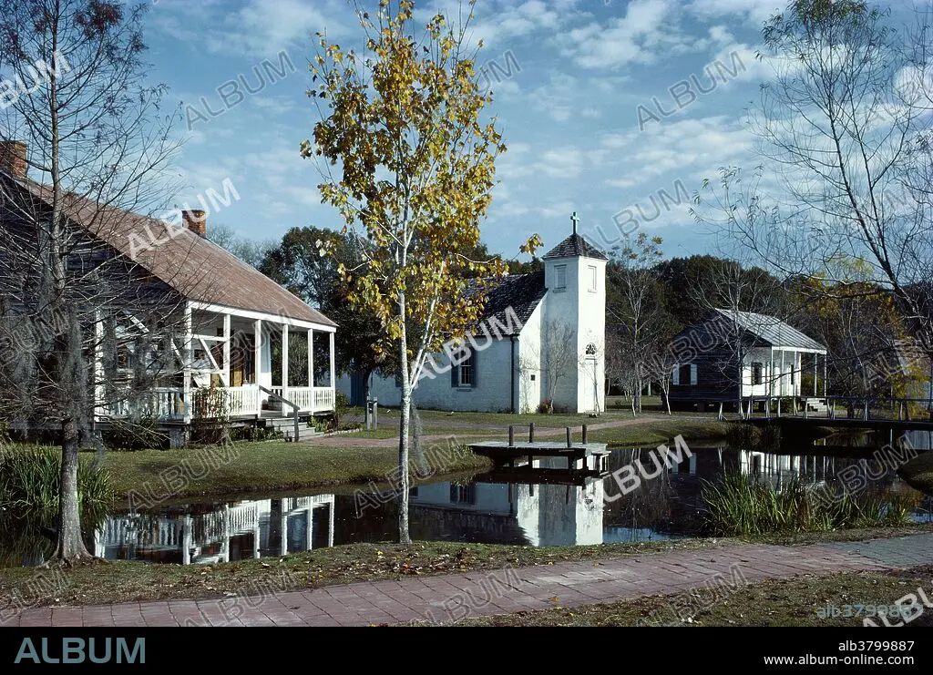 View of historic Acadian Village, a reconstructed 19th century Cajun village in Lafayette, Louisiana.