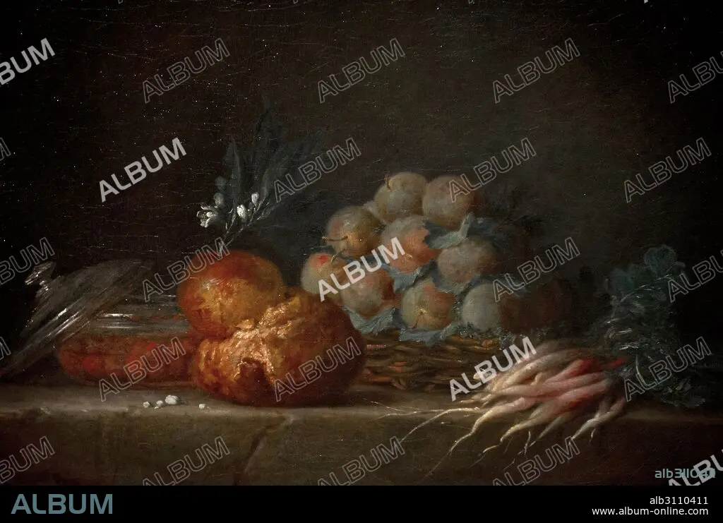 Anne Vallayer-Coster (1744-1818). French painter. Still life with Brioche, Fruit and Vegetables, 1775. National Museum. Stockholm. Sweden.