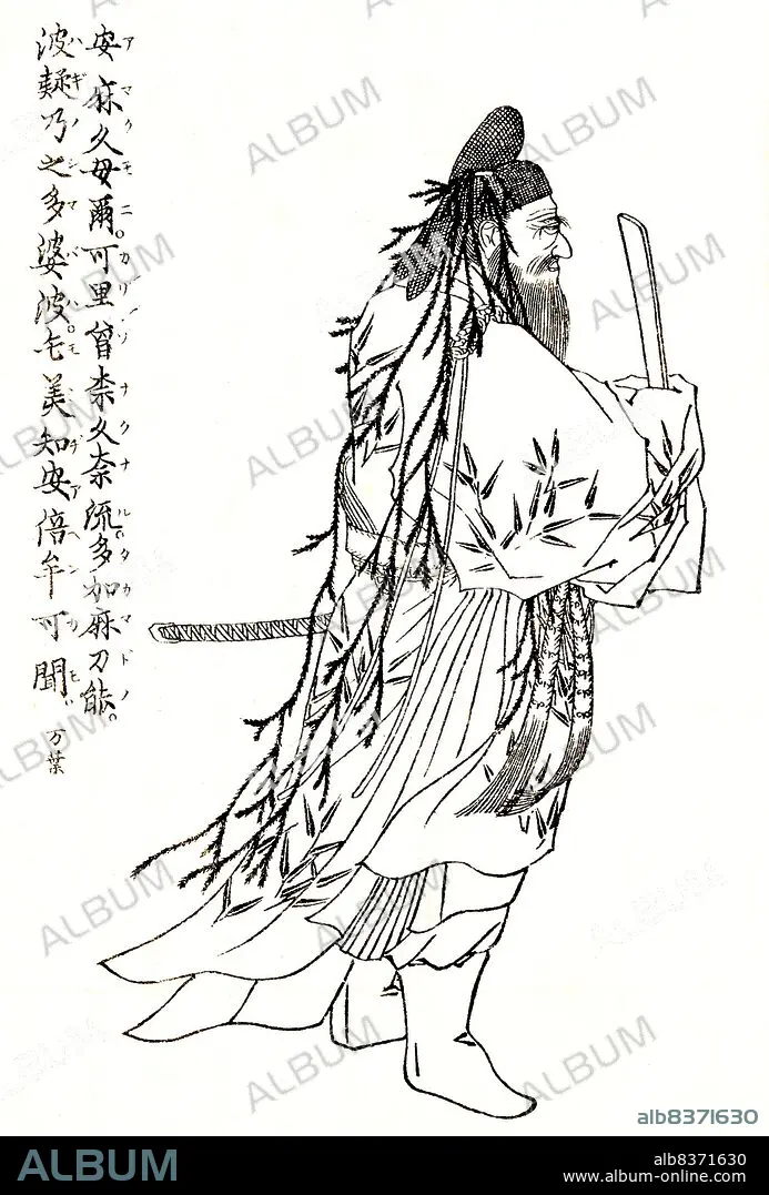 Title: Japan: Onakatomi no Kiyomaro (702 788) was a Japanese noble of the Nara period. Drawing by Kikuchi Yosai (1781-1878) from the book Zenken Kojitzu< / i> (1903)