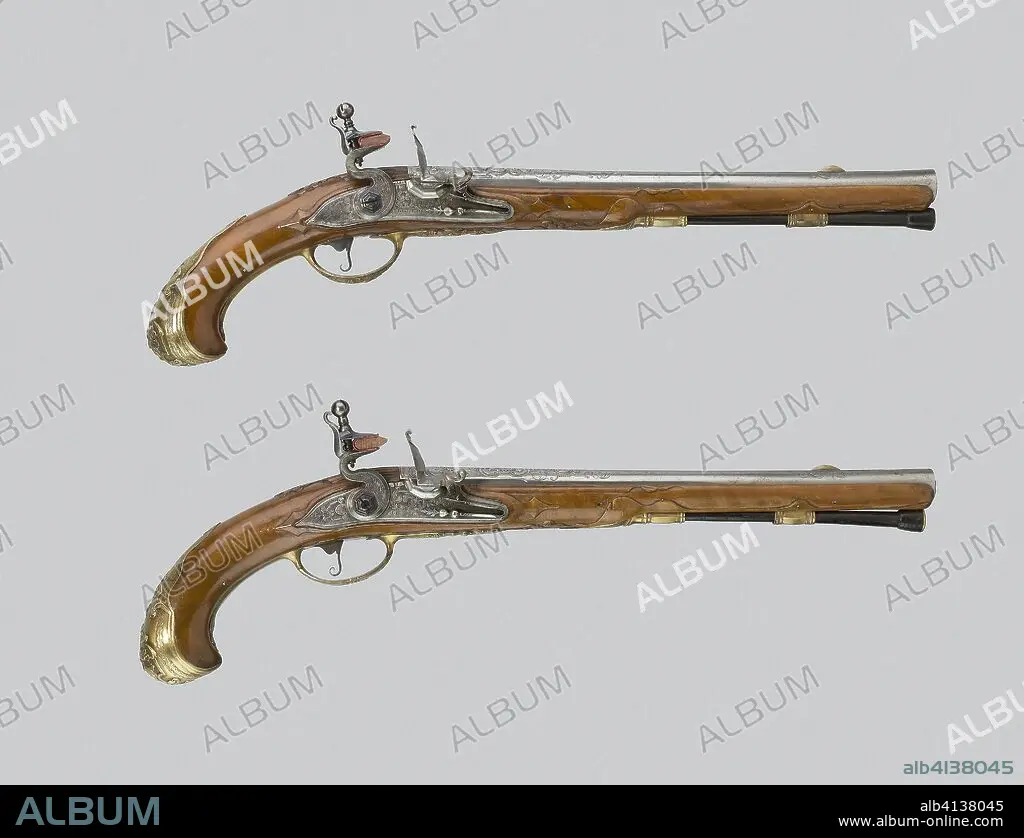 Caption: Pair of Flintlock Pistols. Barrels: Johann Jacob Behr; Locks: Johann Jacob Behr; Flemish, Liège, active 1690s-about 1745. Date: 1720-1735. Dimensions: L. 49 cm (19 1/4 in.)
