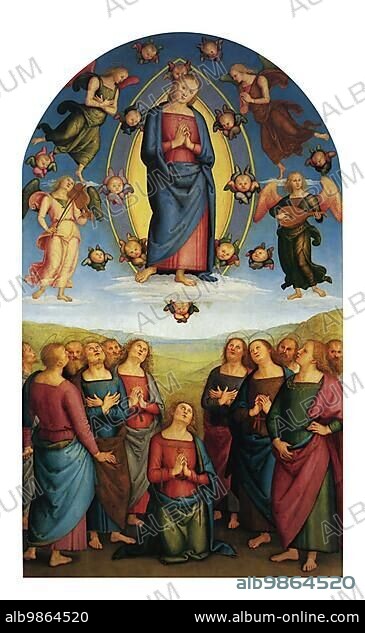 Assumption of Mary into Heaven, Assumption of the Virgin Mary, oil painting by Pietro Perugino, digitally restored reproduction from an original of the period