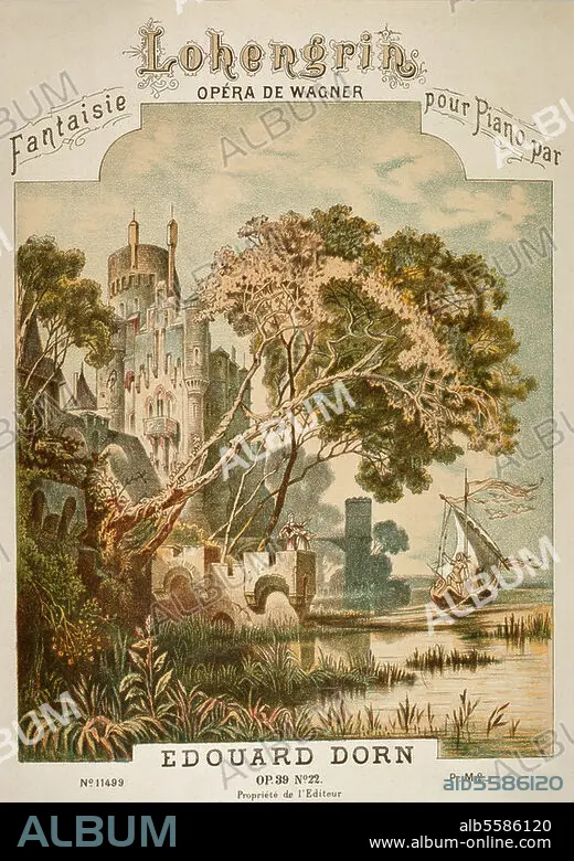 Wagner, Richard Komponist; 1813-1883. Werke: Lohengrin (UA 1850). Titelseite der Klavierbearbeitung: Lohengrin (Opera de Wagner), Fantaisie pour Piano par Edouard Dorn, op. 39, no. 22; Offenbach (Jean Andre) o. J.