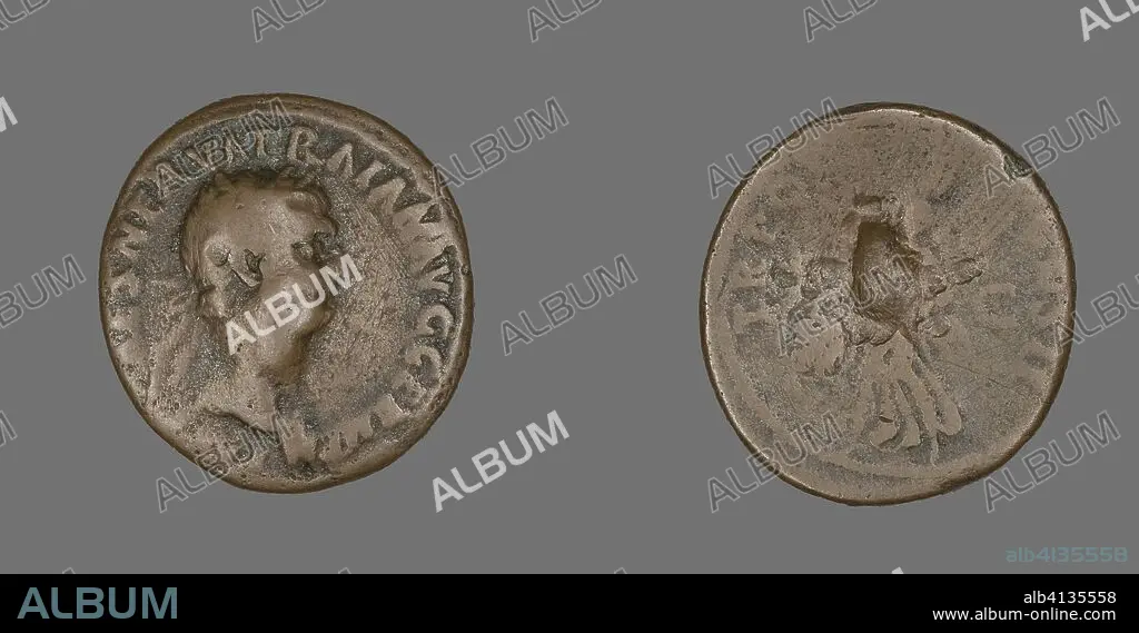 As (Coin) Portraying Emperor Trajan. Roman, minted in Rome. Date: 98 AD-99 AD. Dimensions: Diam. 2.9 cm; 10.80 g. Bronze. Origin: Roman Empire.