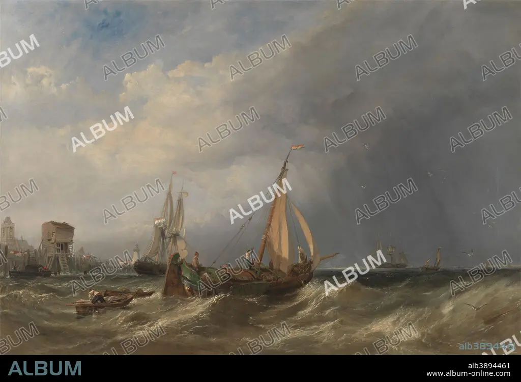 Caption: A Dutch Barge and Merchantmen Running out of Rotterdam. Date/Period: 1856. Painting. Oil on canvas. Height: 787 mm (30.98 in); Width: 1,219 mm (47.99 in).