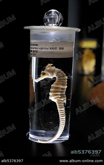 Preserved West African Seahorse (Hippocampus algiricus Kaup), Natural History Museum Berlin, Coral Reef exhibition, Museum of Man and Nature, Munich, Upper Bavaria, Bavaria, Germany, Europe