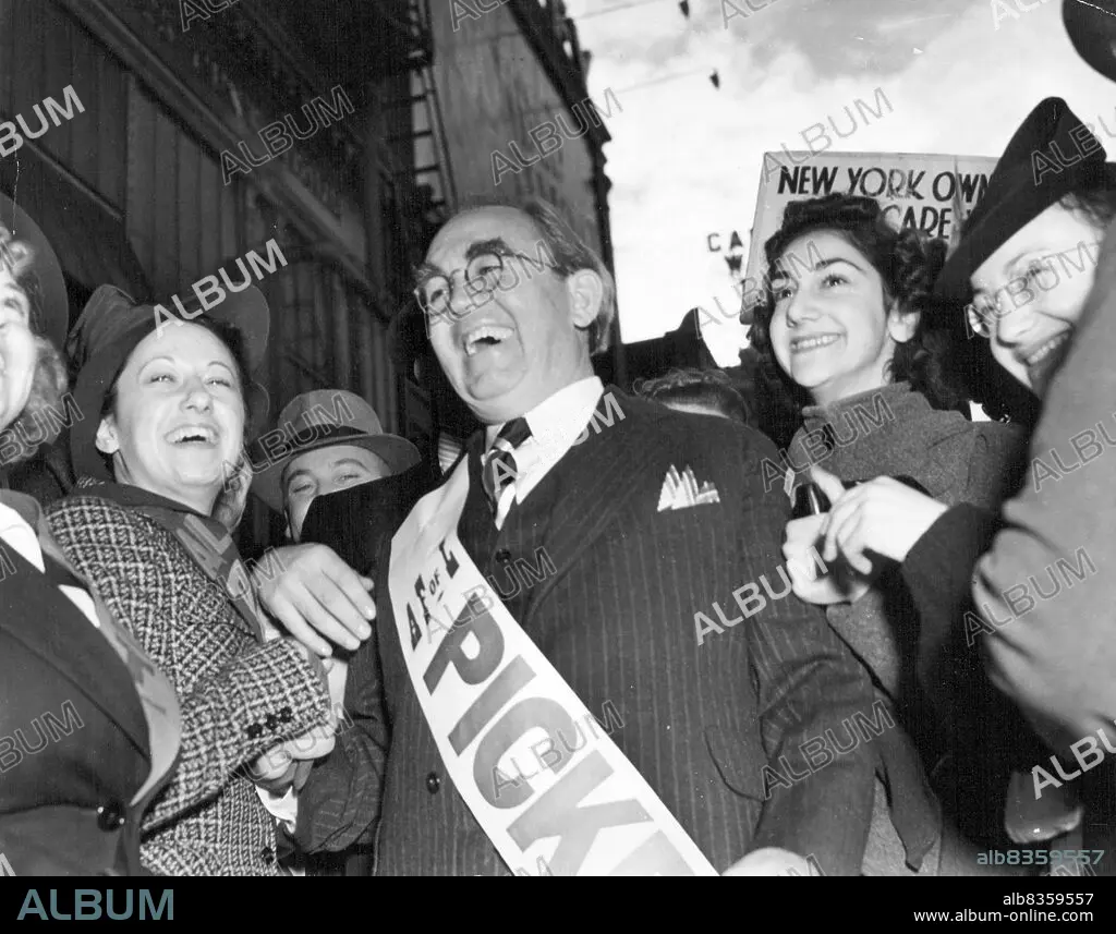 Tom Mooney Takes a Turn on the Picket Line - Tom Mooney, 56-year-old former labor leader, who was pardoned by the Governor Jan. 7, and obsolved of guilt in the 1916 San Francisco Preparedness Day bombing which killed ten persons, is seen as he was mobbed by pretty strikers at a national chain store here as he made an appearance on their picket line recently. January 11, 1939. (Photo by Wide World Photo).