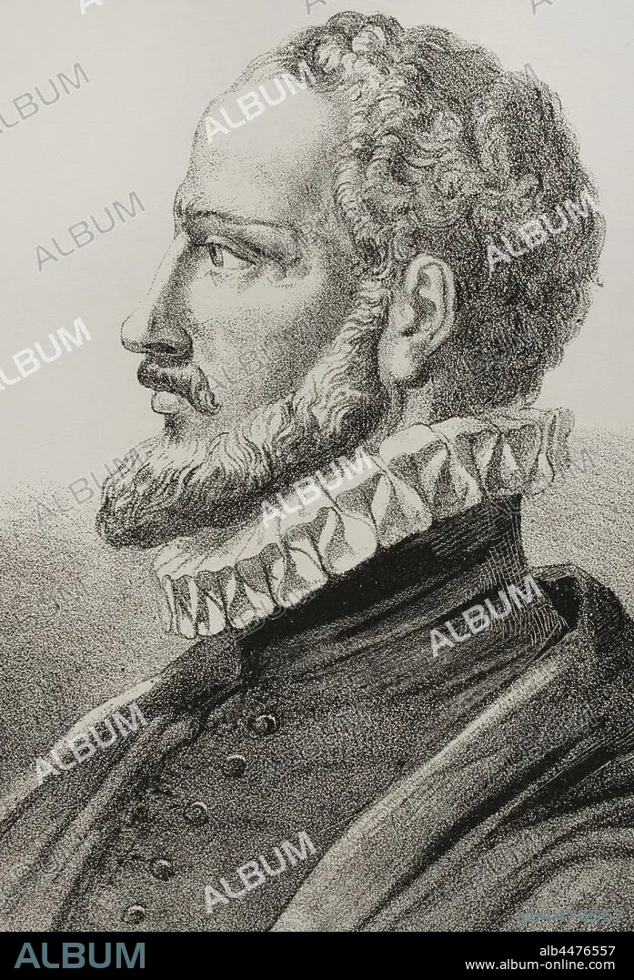 Caption: Juan de Herrera (1530-1597). Spanish architect, mathematician and geometrician. Portrait. Detail. Illustration by Urrabieta. Lithography. Cronica General de Espa–a. Historia Ilustrada y Descriptiva de sus Provincias. Asturias and Leon, 1867.