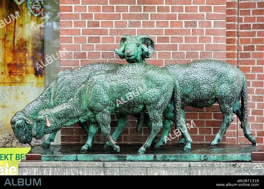 Caption: Sculpture of sheep by the animal sculptor August Gaul, Kloepperhaus, Moenckebergstrasse, Hamburg, Germany, Europe, PublicGround, Europe