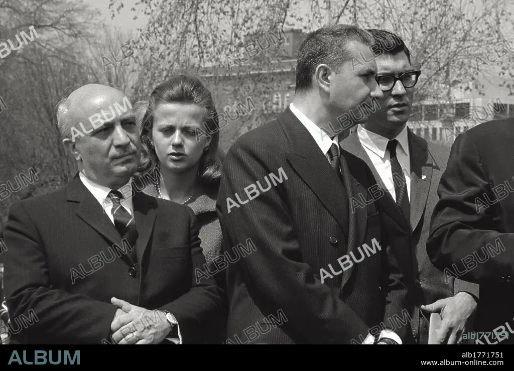Caption: The Italian Prime Minister Aldo Moro and the Minister of Foreign Affairs Amintore Fanfani listening to the interpreters during an official meeting in Washington. Washington, 1965
