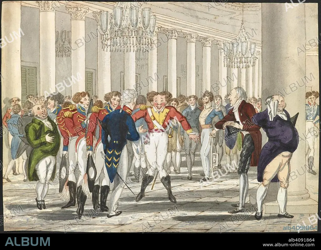 SIR CHARLES D'OYLY. Tom Raw meets the Governor General at Government House, Calcutta. Unpublished drawing by D’Oyly for his humorous poem 'Tom Raw the Griffin'. c.1820. Source: WD 4492.