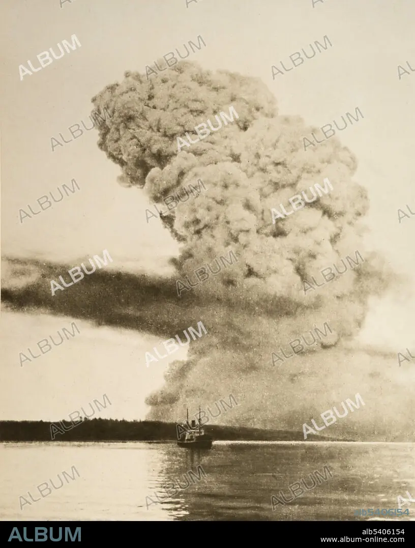 Caption: A view of the pyrocumulus cloud from the Halifax explosion, taken thirteen miles away and fifteen seconds after detonation. The Halifax Explosion occurred in Halifax, Nova Scotia, Canada, on December 6th, 1917, when the Mont-Blanc, a French cargo ship carrying high explosives, collided with another ship near Halifax Harbour. A fire on board the Mont-Blanc caused a massive explosion that destroyed a large section of Halifax, killing 2,000 people and injuring 9,000.